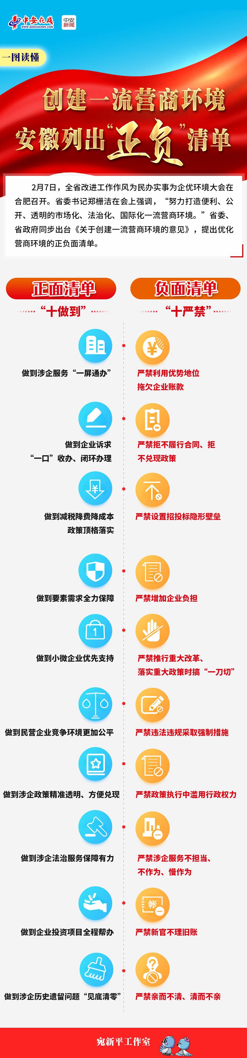 【一圖讀懂】創建一流營商環境,安徽列出“正負”清單