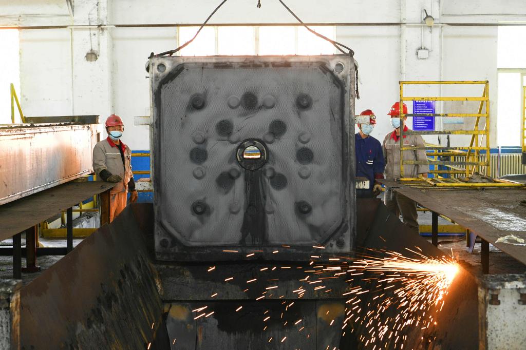 在該廠西區壓濾一、二期17臺壓濾機更新改造施工現場,機電維修工正在緊張地安裝新型壓濾機、拆除舊設備,認真對各臺壓濾機設備進行檢查……2022年集團公司“兩會”提出,要大力推進煤泥無量化項目改造。按照集團公司工作部署,完成后續煤泥減量化改造也是臨選廠2022年要完成的“六件大事”之一。目前,該廠正對西區壓濾一、二期17臺壓濾機進行更新改造,改造工作時間緊、任務重,近期又因封廠管控,施工人員緊張,他們極力克服疫情影響,力爭在工期內完成壓濾機的更換改造任務。