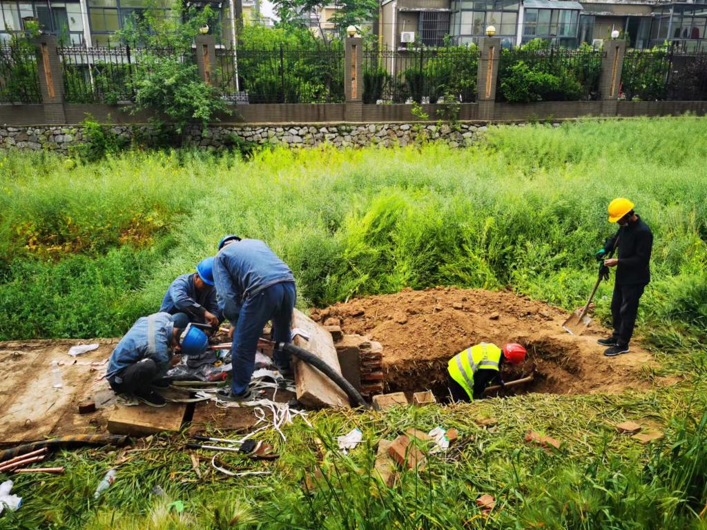 機電運營服務公司及時處理供電線路故障,組織人員重新砌筑桓譚公園南側119線路電纜井,確保辦公中心供電安全。