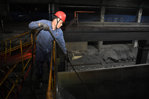“今天還好,煤不潮、地不濕,卸的快些,前天下雨可費力了,一個班下來胳膊、腿,酸麻、發脹。”裝卸工張勇2019年來到裝卸崗位,雖然資歷淺,但干起活來一點也不差,只見他弓著腰,掄起鐵鏟麻利的把車道旁的積煤鏟進倉內,還不時蹲下將煤堆里的雜物一一挑出來。他擦了一把汗,回頭指了指北面受煤坑一道工作面,笑著說:“旁邊汽運煤場地建成以來,疏通受煤坑篦子、清理道心積煤也是我們的活,我們不怕累,只有廠里有效益,職工才能有收益。”