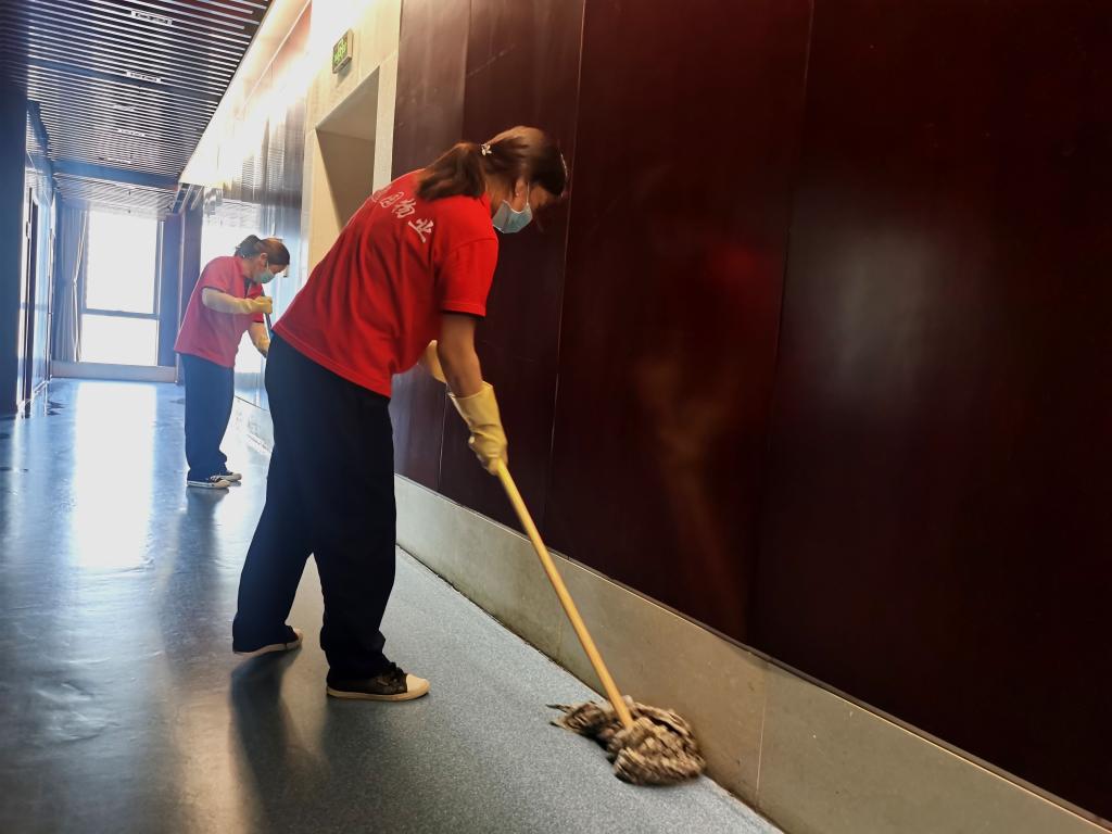 逸園物業利用假期大樓人員少的契機,組織保潔人員對各樓層進行深度保潔。