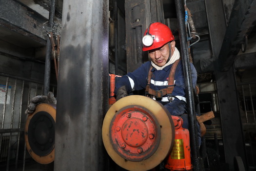 保運區職工李剛檢修主井箕斗