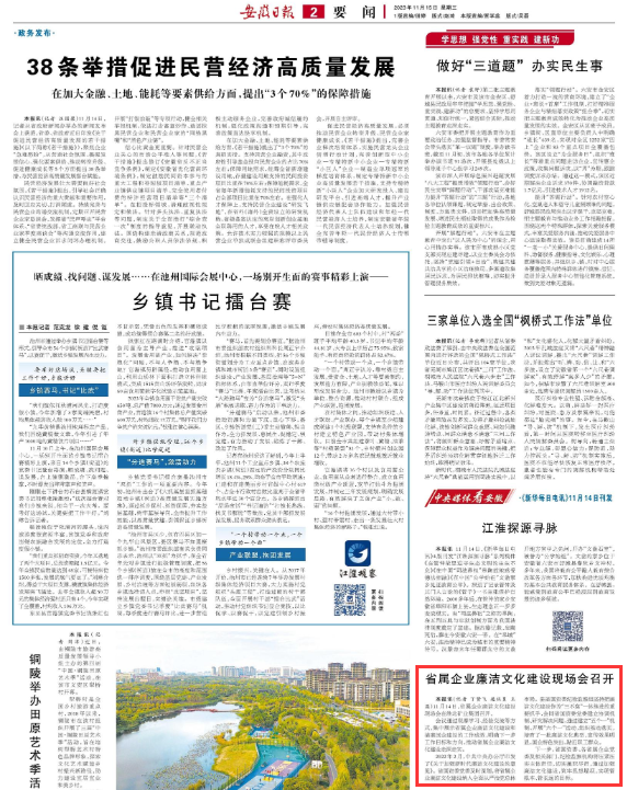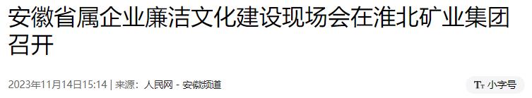 11月14日,安徽省屬企業(yè)廉潔文化建設(shè)現(xiàn)場會在淮北礦業(yè)集團召開。會議通過觀摩學(xué)習、經(jīng)驗交流等方式,集中展示省屬企業(yè)廉潔文化建設(shè)和清廉國企建設(shè)的工作成效,明確下一步工作目標和方向,推動省屬企業(yè)廉潔文化建設(shè)走深走實,不斷優(yōu)化凈化國有企業(yè)政治生態(tài),為國資國企高質(zhì)量發(fā)展提供堅強保障。