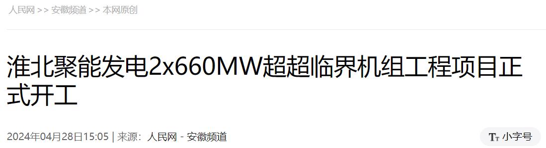 4月28日上午,位于淮北市烈山區(qū)電廠現(xiàn)場,安徽省“十四五”重要支撐性電源項目——淮北聚能發(fā)電有限公司2×660MW超超臨界機組工程項目舉行開工儀式,正式拉開工程建設(shè)序幕。