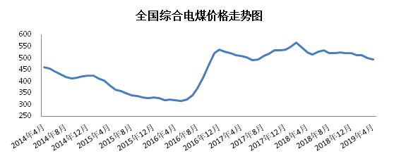 2019年5月15日,國家發展改革委價格監測中心公布4月中國電煤價格指數為495.26元/噸,環比下行1.01%,同比下降5.26%。其中,監測的31個省市(不含北京市)中,價格下行地區數量有22個,下行幅度減弱至27.44元/噸以內;其他9個地區電煤價格全部上行,漲幅上行至19.21元/噸以內。本月全國煤炭價格活動范圍整體上移,且煤炭價格上下行地區數量比例基本維持,說明價格下行區域活力減弱,而上行幅度擴大。