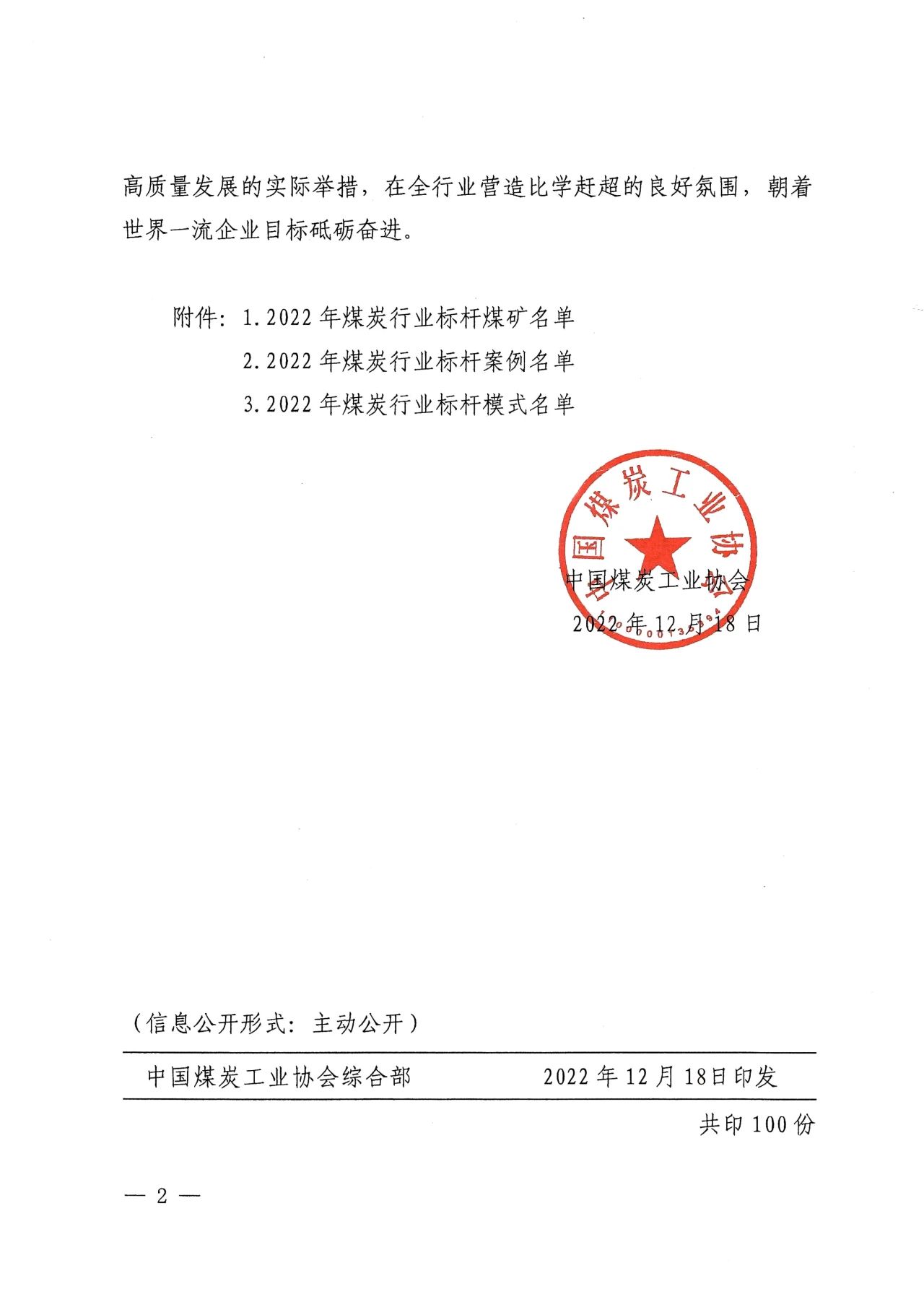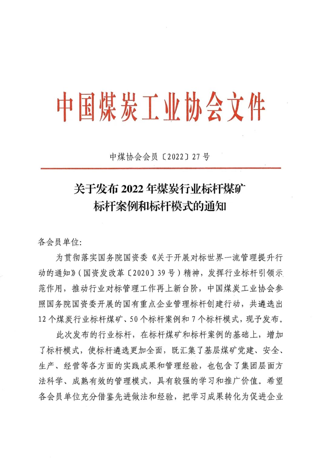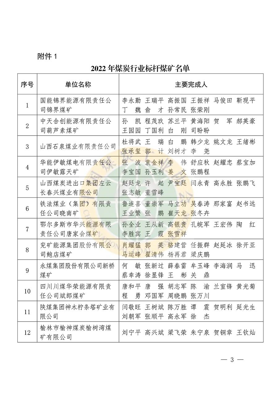 中國煤炭工業協會關于發布2022年煤炭行業標桿煤礦、標桿案例和標桿模式的通知